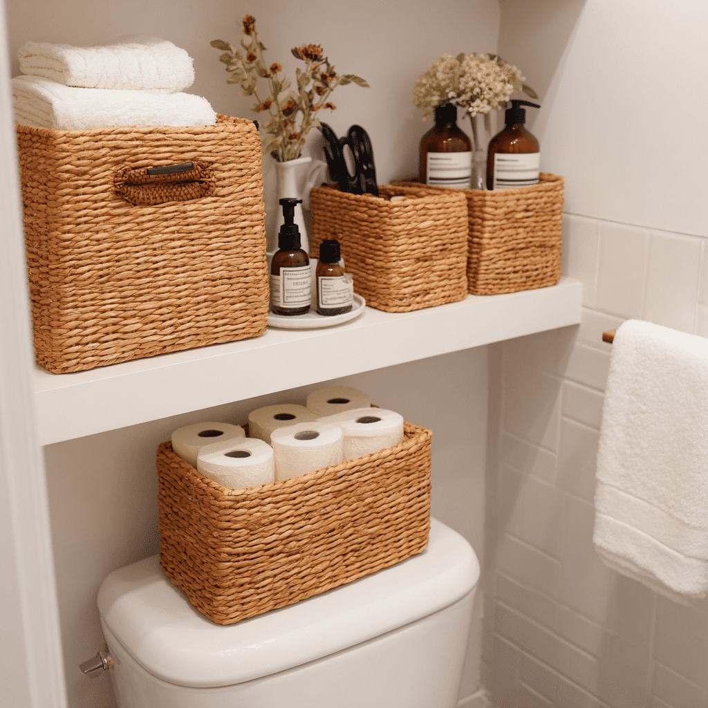 These work especially well in compact setups that rely on gentle small bathroom storage choices.