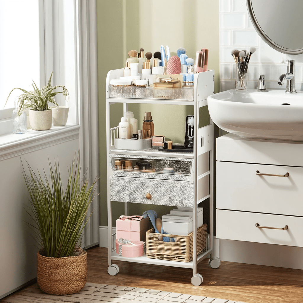 What’s the best storage for makeup in a tiny bathroom?