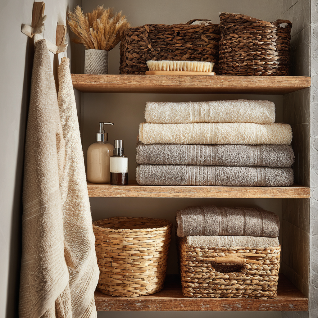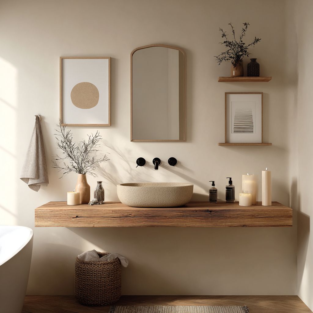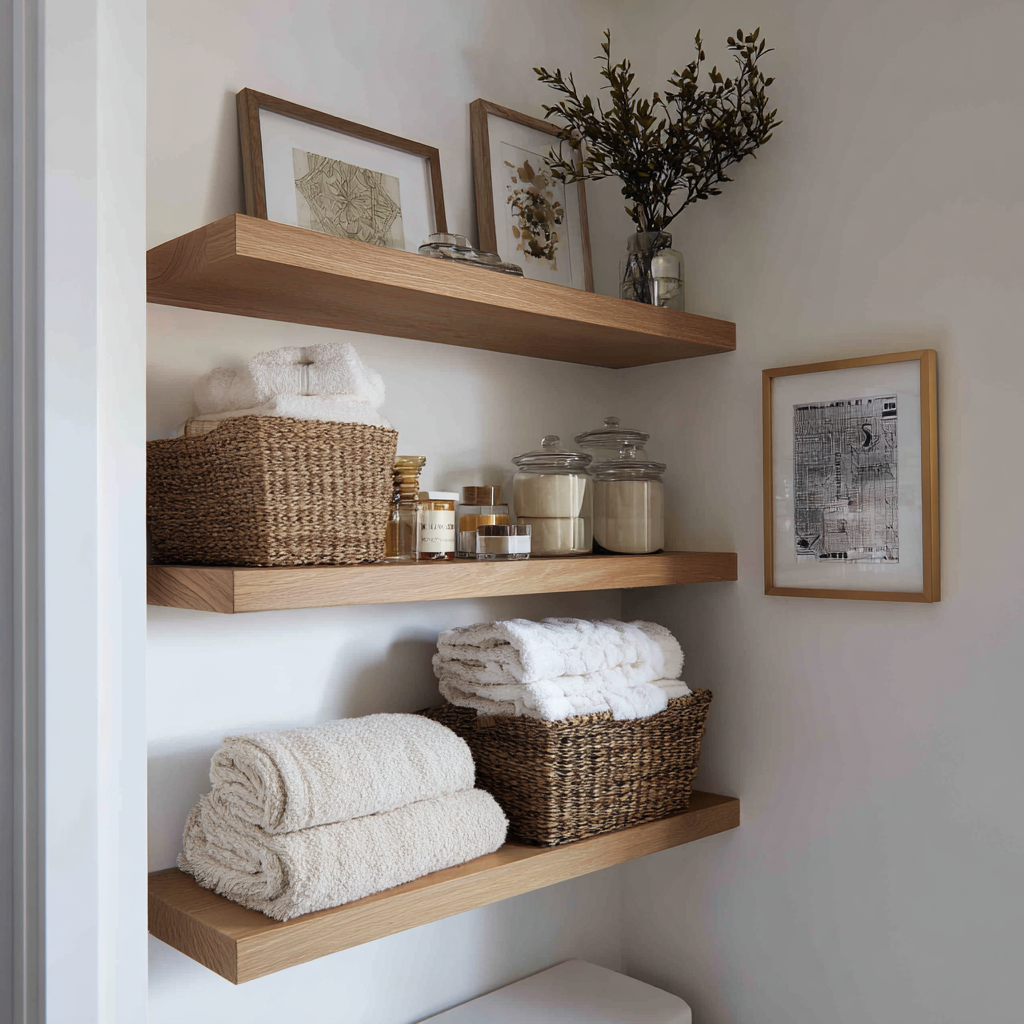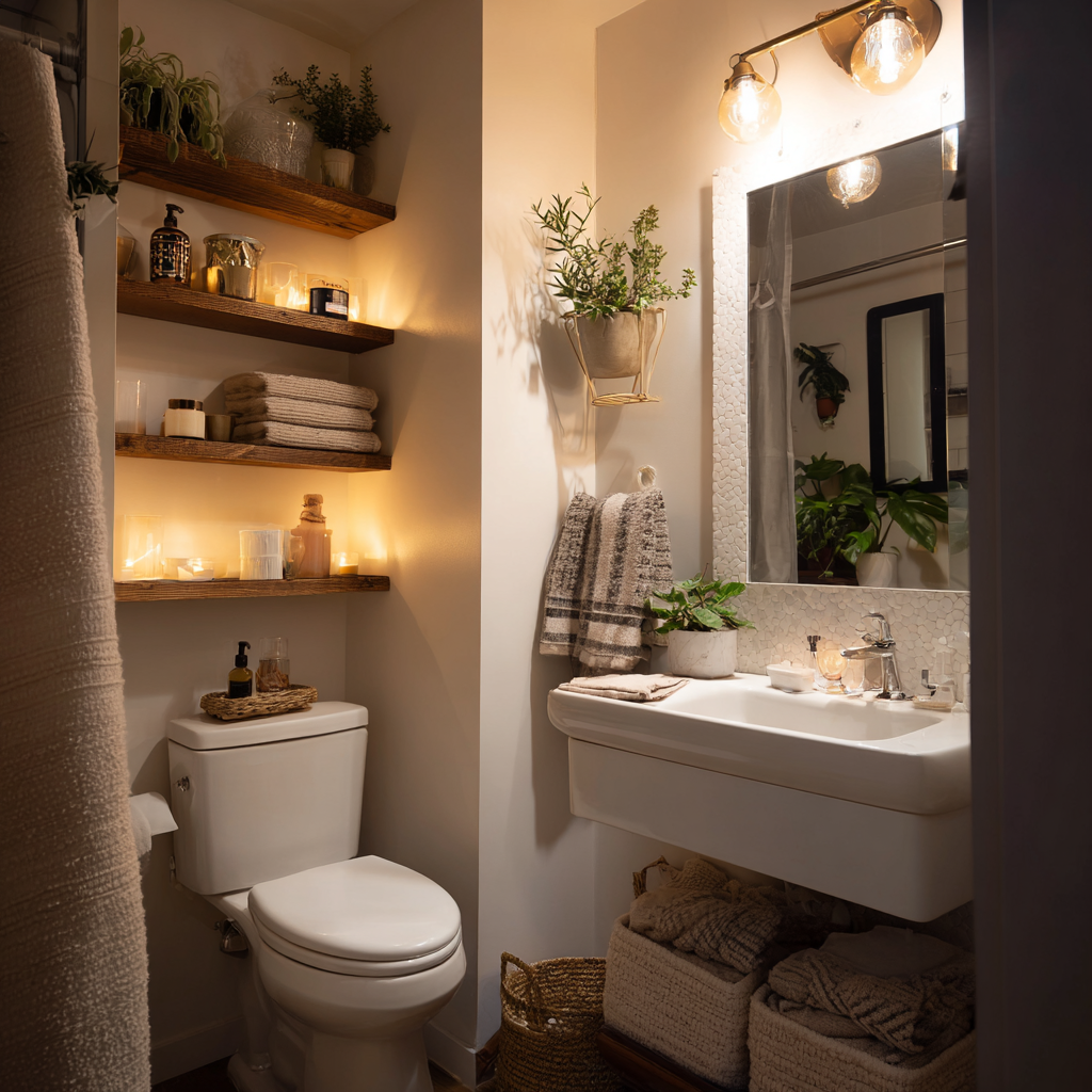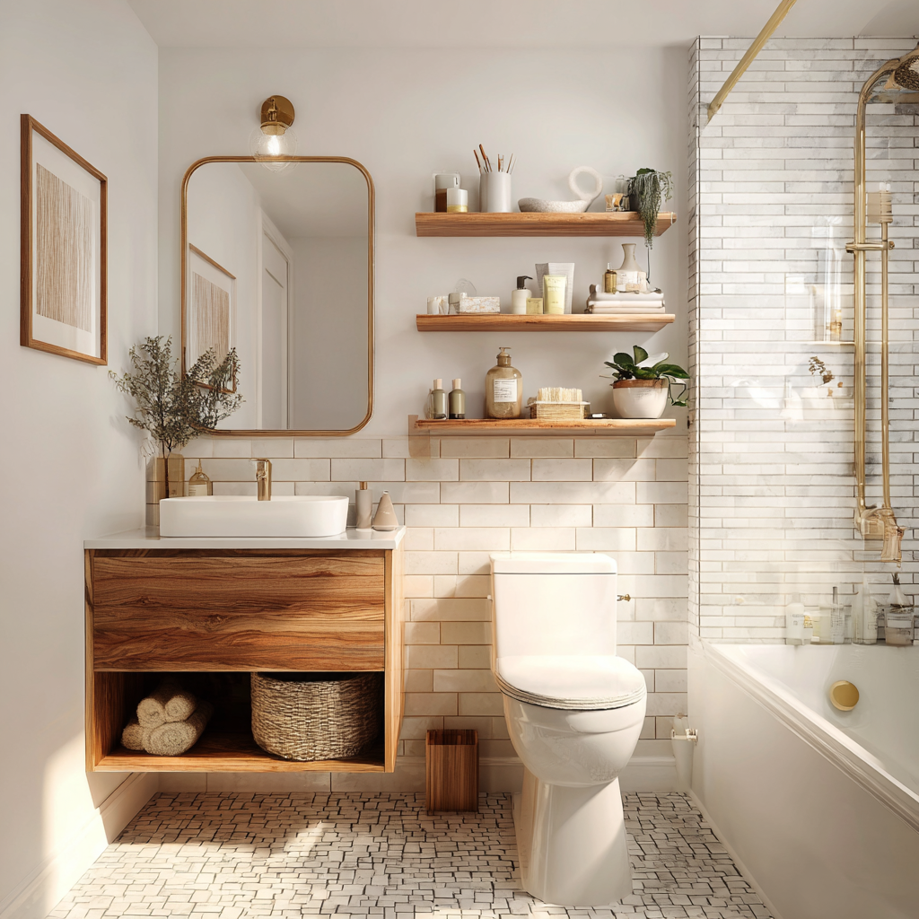 These tones create the perfect base for layering small bathroom decor without overwhelming tight spaces.