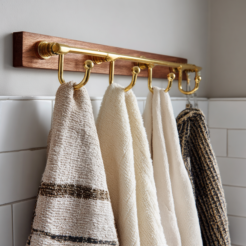 Hooks fit perfectly into minimal small bathroom wall ideas.