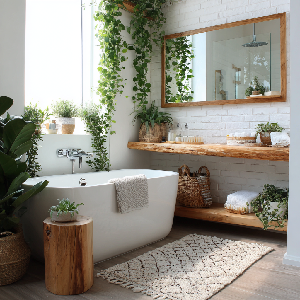 Plants add instant charm to pictures of small bathrooms and work beautifully with natural décor.