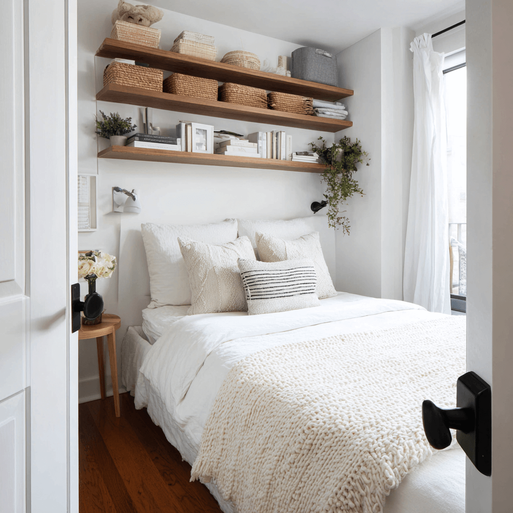 Small bedrooms benefit from smart vertical solutions. When the floor is limited, your walls become valuable real estate.