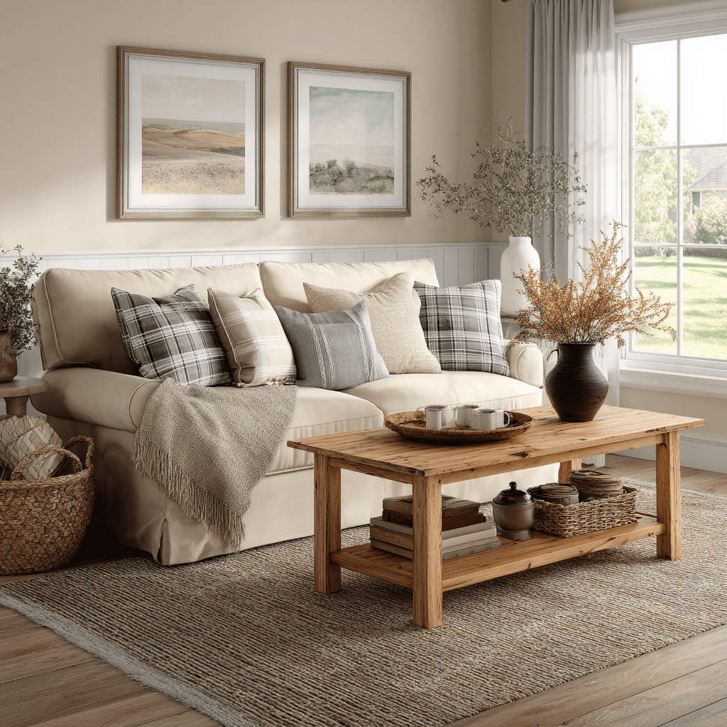 Farmhouse decor brings warmth through light wood tones, soft colors, and simple lines. You can add a warm rug, gentle wall pieces, or soft metal tones to bring in Modern farmhouse decor ideas for cozy homes that make rooms feel comforting without filling the space.