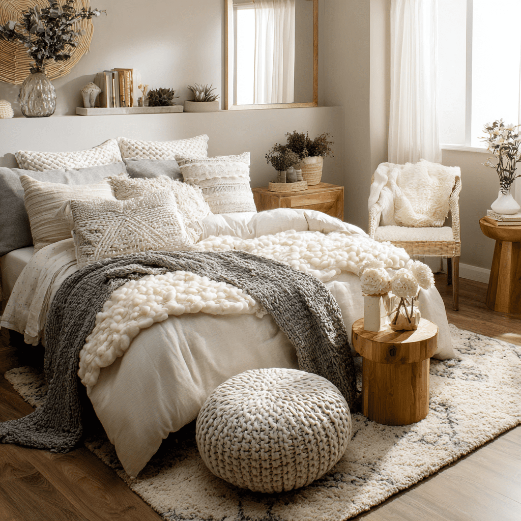 Soft pillows, woven blankets, and textured rugs help bring warmth into small rooms. These gentle details help a room feel comforting without needing extra furniture.