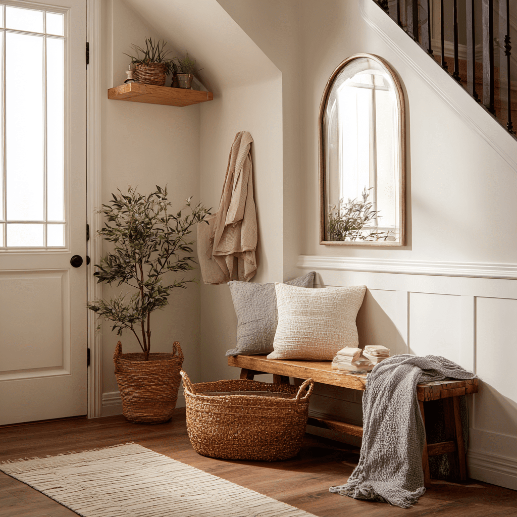 Even a tiny entryway can feel warm with a small mirror, a slim shelf, or one cozy basket. This soft approach supports Entryway ideas to create a welcoming small space, giving you a gentle welcome every time you step inside.