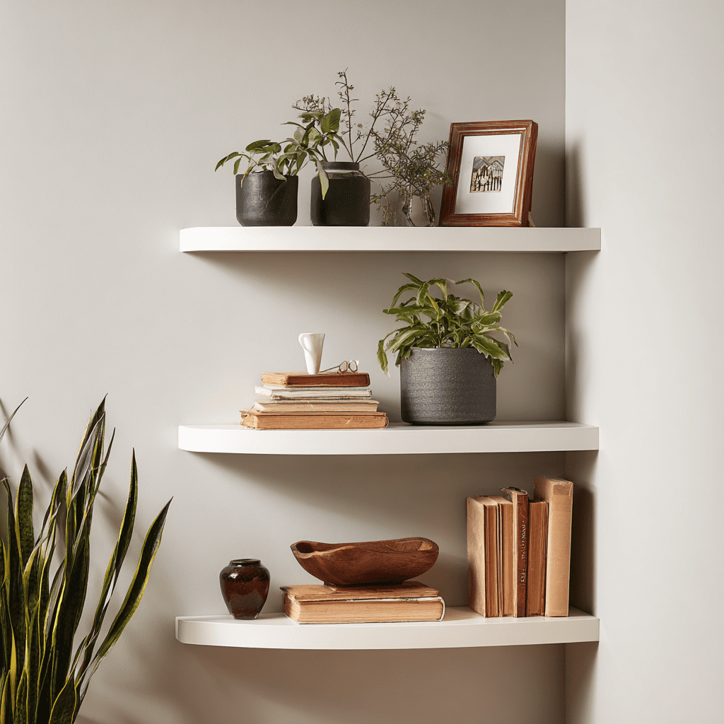 Floating shelves give you space to show soft decor, books, or gentle plants without using the floor. They help you style a room without making it feel heavy.
