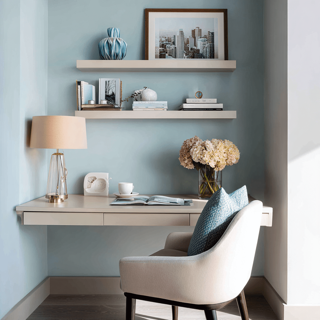 A small desk area can still feel beautiful. A soft lamp, tidy shelves, or simple wall art can help your work corner feel peaceful. This blends perfectly with Home office decor ideas for stylish workspaces at home, especially when space is tight.