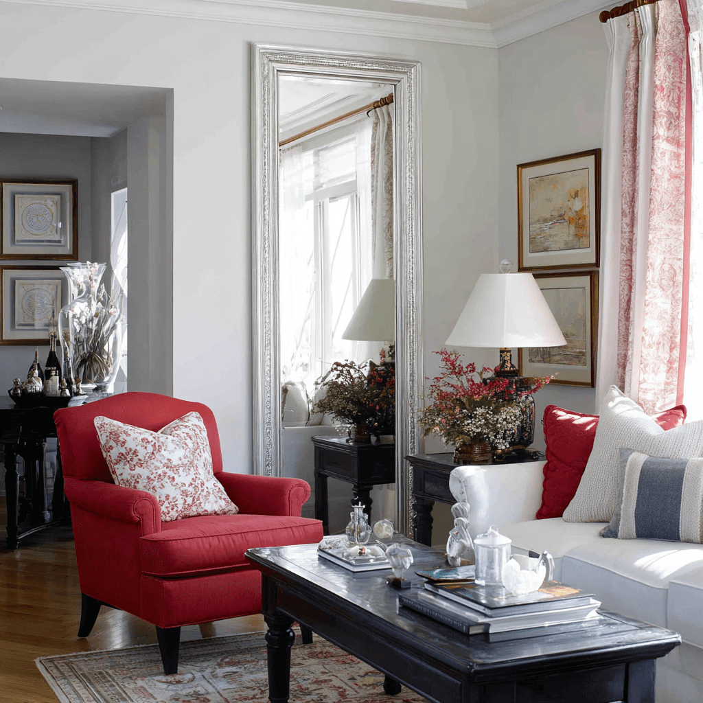 Mirrors reflect light and make a small room feel bigger instantly. A tall mirror helps lift the room upward and brighten dark corners.