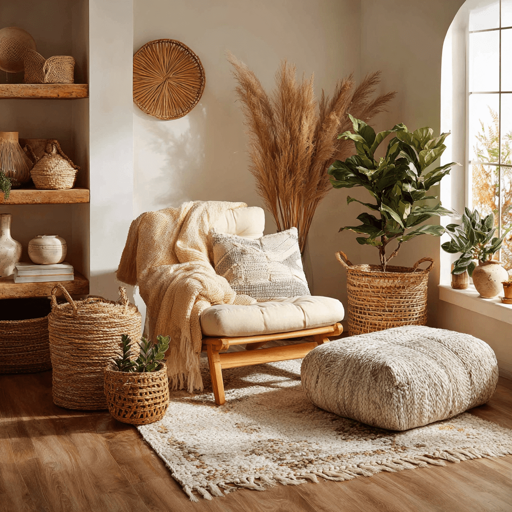 Boho styling makes a room feel relaxed with warm textures, simple patterns, and natural tones. It mixes well with small-space living because it doesn’t require perfect matching. Adding woven baskets, soft pillows, or dried stems gives you gentle Boho room decor ideas for relaxed living without overwhelming the room.