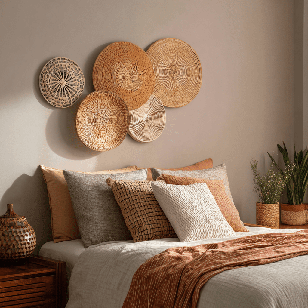 Boho style uses gentle textures, curved lines, and natural tones to create a relaxed look. Soft wall pieces bring that feeling into the bedroom. This idea matches boho wall decor ideas for bedrooms, giving your room a slow, warm, and peaceful mood.