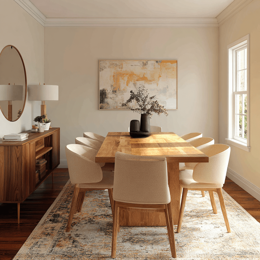 A dining room feels more welcoming with soft wall textures, warm colors, or gentle artwork. This style works well with dining room wall decor ideas for cozy homes, creating a space that feels perfect for long meals and soft conversations.