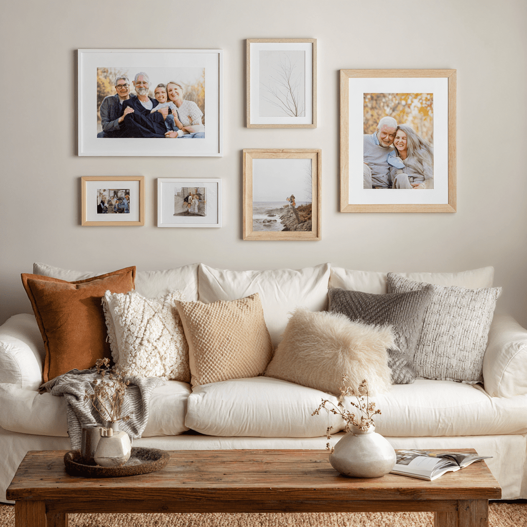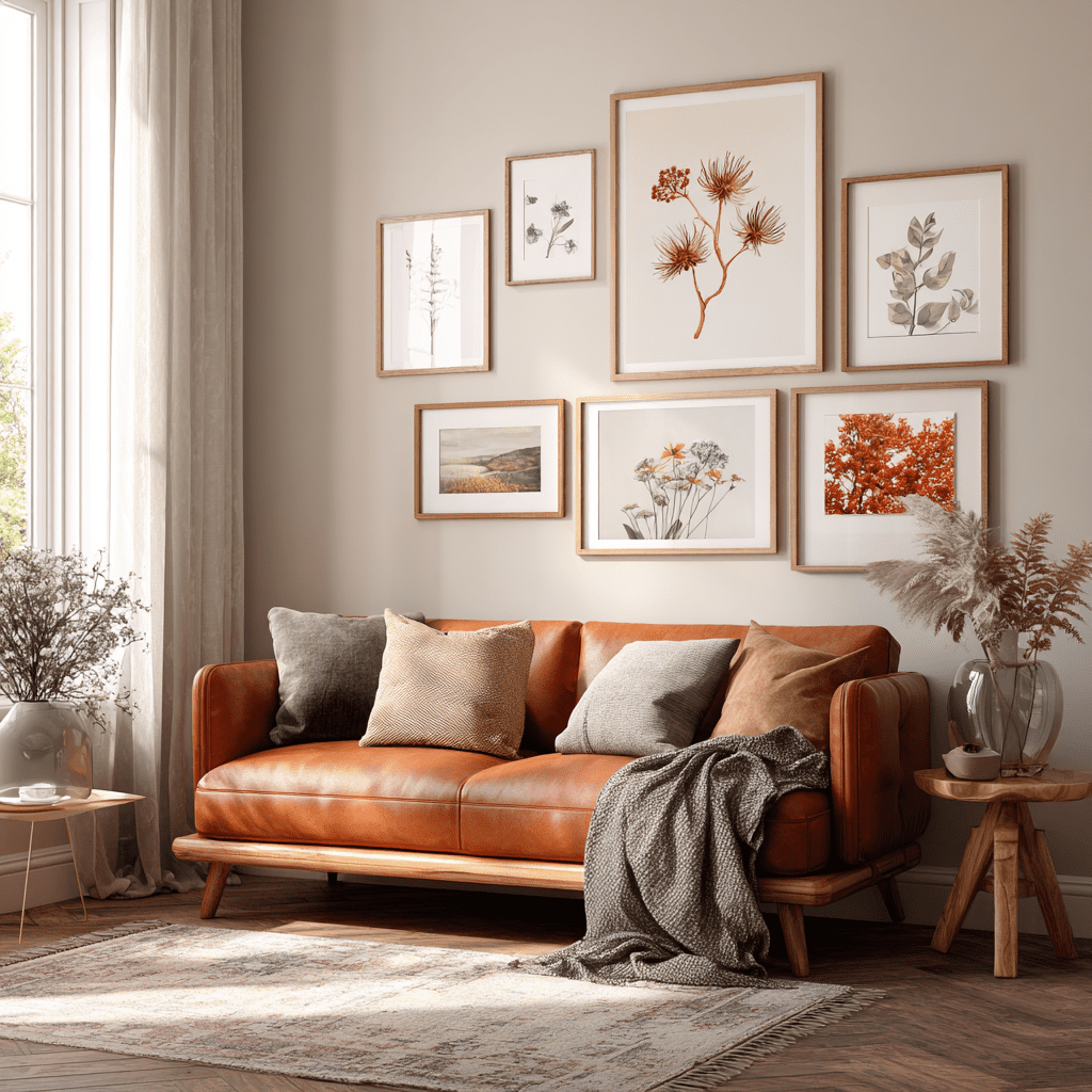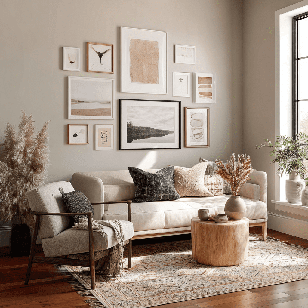 Gallery walls don’t need many frames. A few soft tones arranged together can make your space feel personal and warm. This simple idea pairs well with gallery wall ideas for living rooms, helping the room feel lived-in without feeling full.