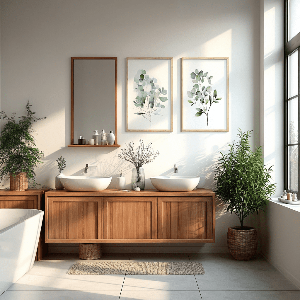 A small bathroom does not need many pieces. One or two simple choices can make the space feel bright without crowding it. Light textures and soft art fit perfectly with bathroom wall decor ideas for small bathrooms, especially when the room needs more air and less weight.