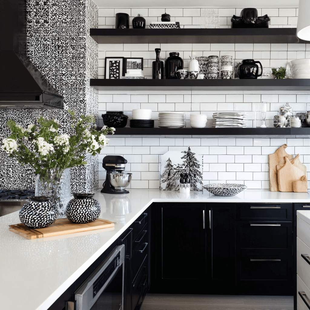 If you love contrast, black and white kitchen decor can look bold yet uncluttered.
