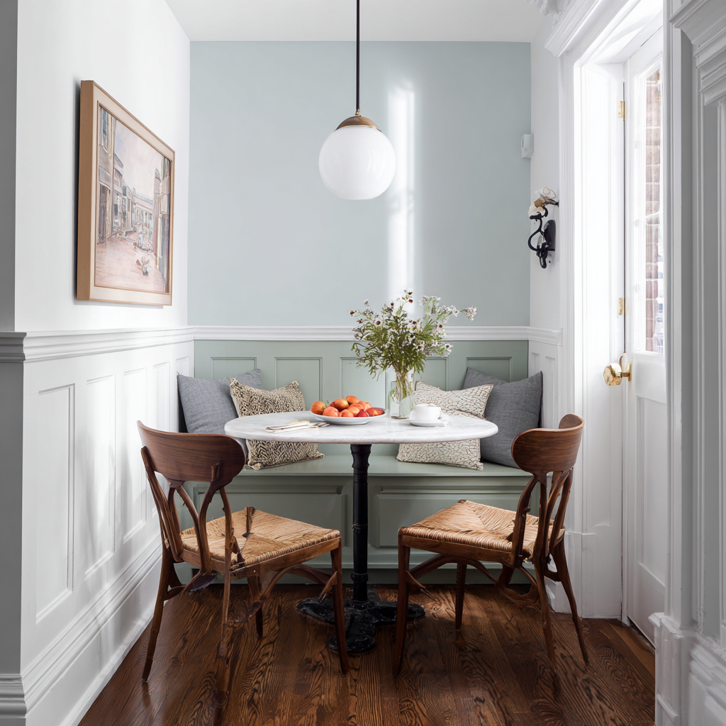 A small breakfast nook becomes a soft morning retreat, even in a tiny kitchen.