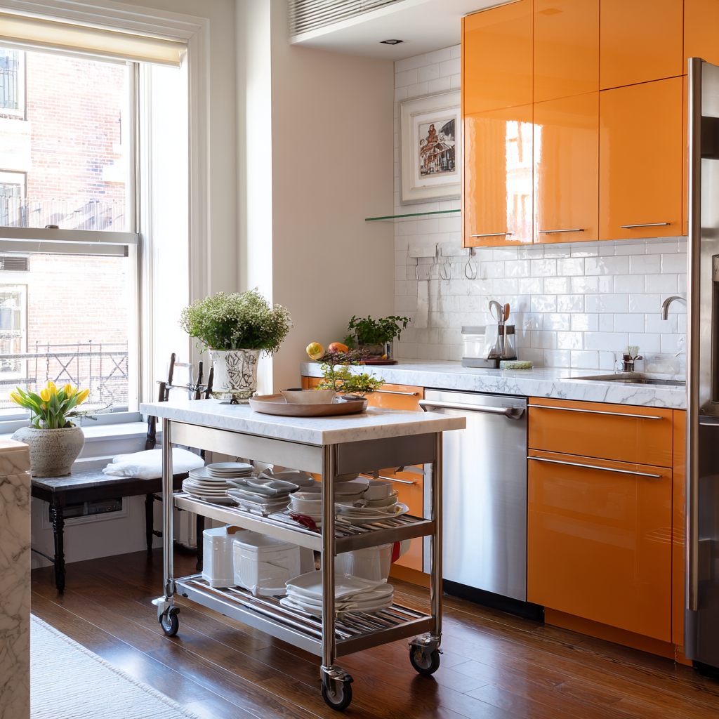 Many small-apartment kitchens can still fit a small kitchen island, especially if it’s: